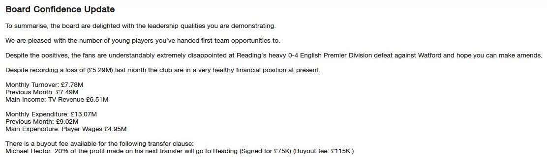 The board are delighted with my leadership skills, so things at that level are fine, although I would have liked to see a few more wins on the board and a slightly better league position, we sit 8th, so we have a chance to really kick on here and progress. A good opening period overall.