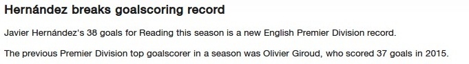 HERNANDEZ’S 38 GOALS IN THE LEAGUE IN ONE SEASON IS A NEW PREIMER LEAGUE RECORD!