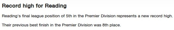 Finishing 5th in the league beats the highest position Reading have ever finished, which was 8th, under Steve Coppell back in the day.