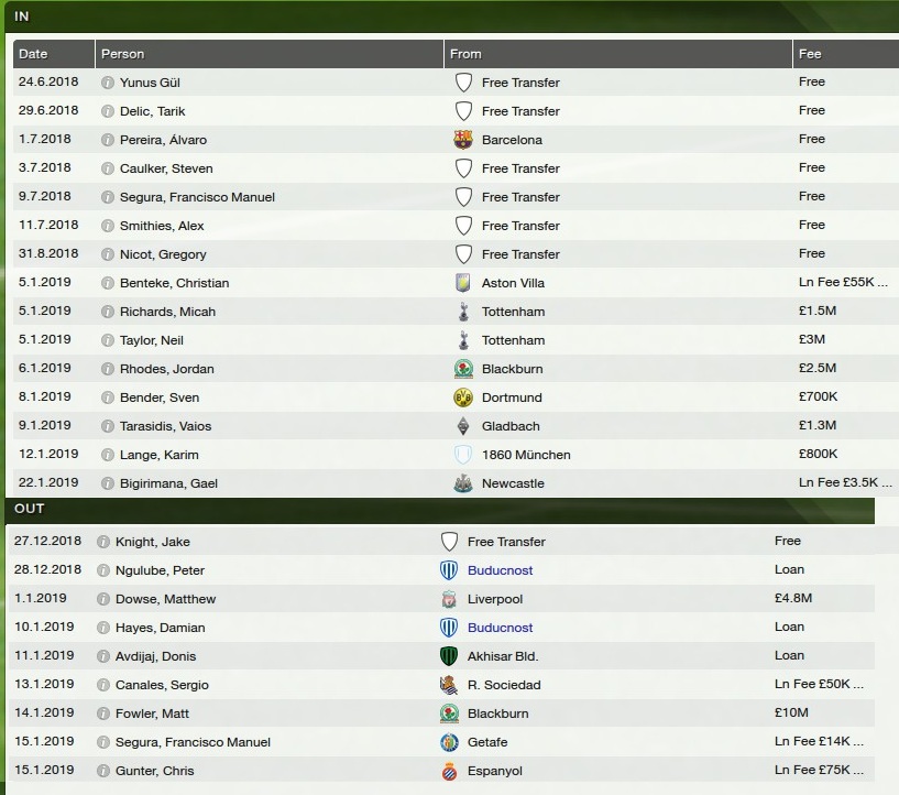 With Taylor and Richards coming in to the team, I decide to try and sell CHRIS GUNTER, who has been a great consistent servant, but rarely spectacular. No one agrees to buy him, so he joins Espanyol on LOAN.