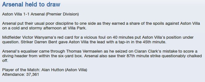 In other news, the F.A. Cup 3rd round has been made and the stand out tie is Arsenal v Aston Villa at the Emirates.