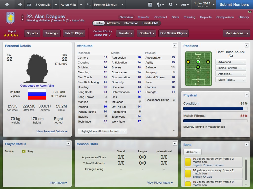 "We've had our ups and downs but we've pulled off some good results and made it to the New Year. I'm just glad the world didn't end in December like that film, 2012, predicted. It would've been an awful shame to never see Dzagoev in a Villa shirt."