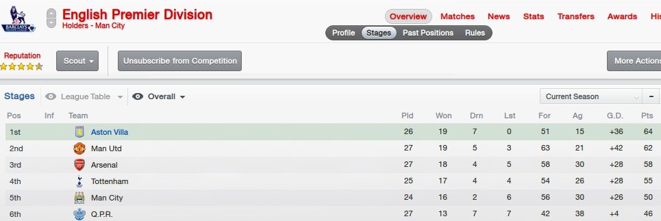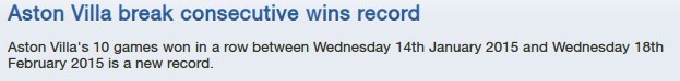 With a game in hand, the Villains move top of the league and can further extend their lead to five points by beating local rivals West Brom in their next league at Villa Park....