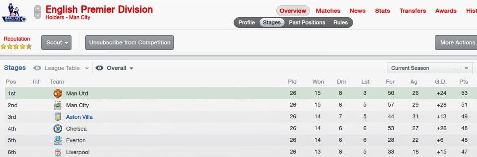 After strong wins over London opposition and a crushing defeat at the Britannia, Villa sit third in the table where only six points seperate league leaders Manchester United and sixth placed Liverpool.
