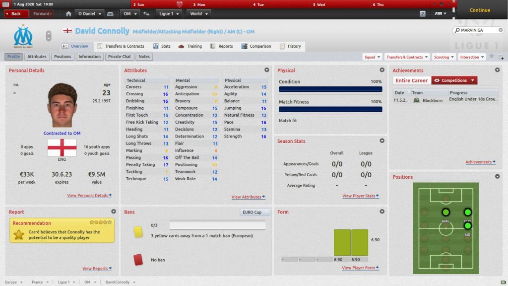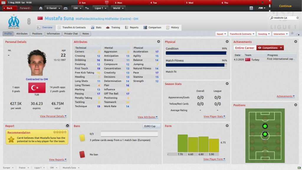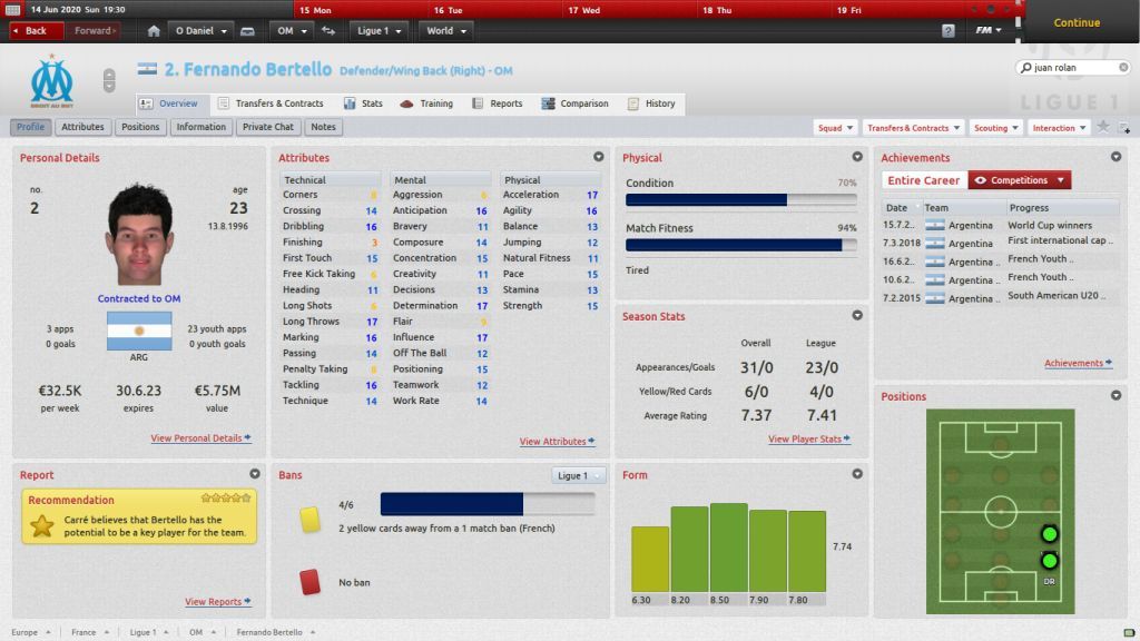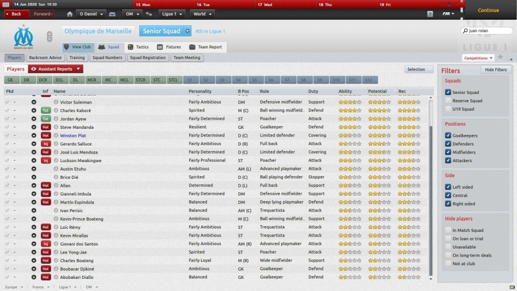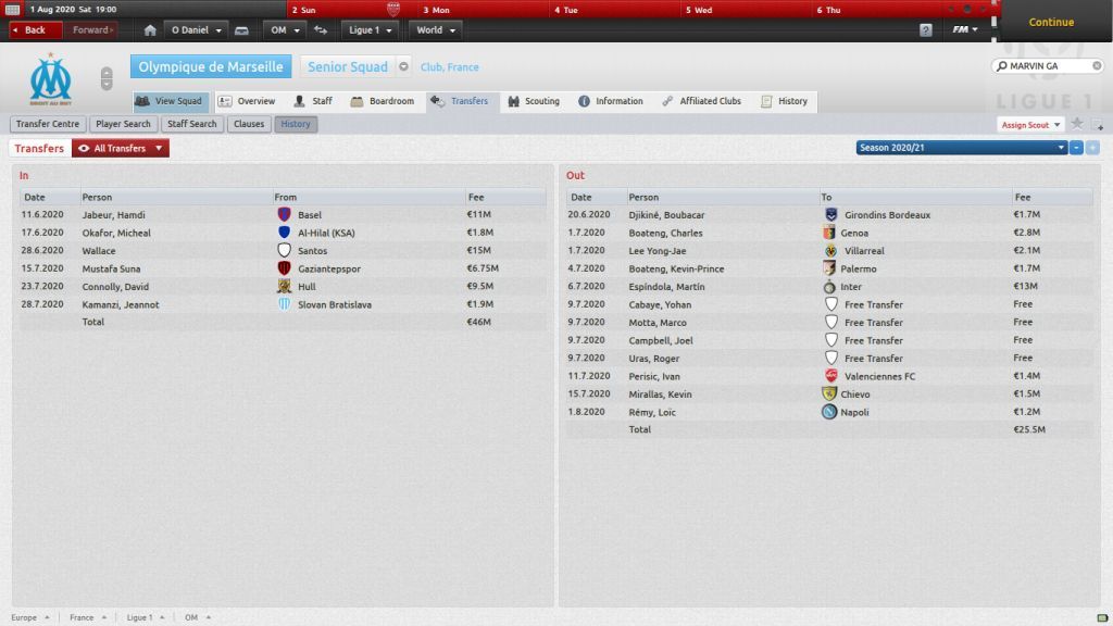 Olympique de Marseille commonly known as L’OM, was founded in 1899. Its stadium is known as Stade Velodrome, it is a 67000 all-seater stadium in very good condition, with undersoil heater, and grass surface, its dimensions are 105m by 68m. Olympique de Marseille has Top Training Facilities, Average youth facilities, Average Youth Coaching and Above Average Youth Recruitment.
