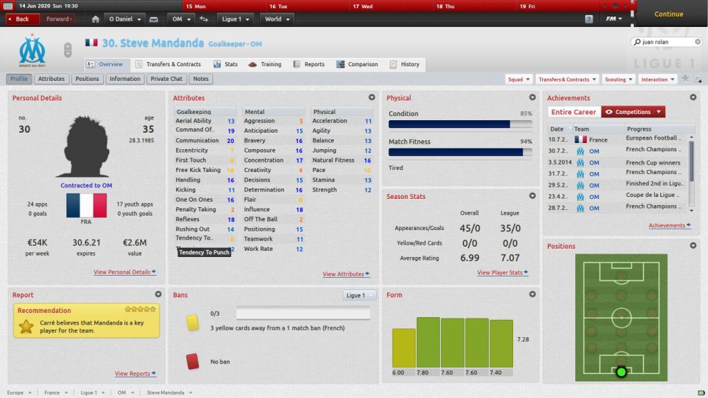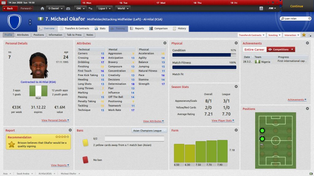 I had been out of management for a while so i had to update my knowledge in the World’s Football.