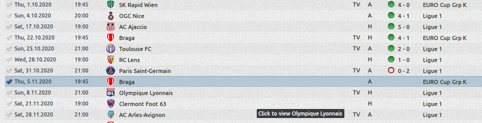 This turned out to be my most perfect month, ALL WINS. And also this was the month OL and PSG finally slipped, and now I’m at the top of the table. So happy!!! I think I deserve a Holiday until the 1st day of January 2021. That means all the friendly matches will be taken care of by my assistant, Trezequet, and I’ll finally be able to take a tour of the romantic city of Paris with the MRS, yea I’m sure she’d love that……