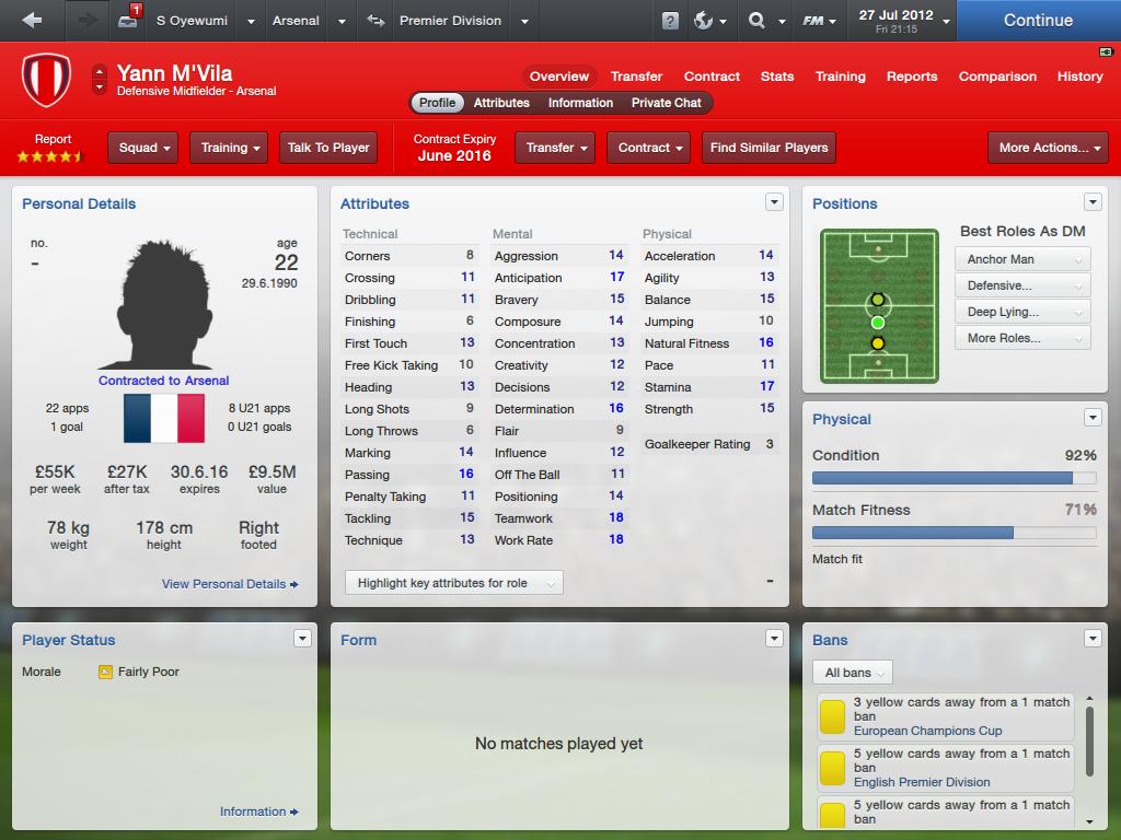" I think in he past the current 4-3-3 fornation has not been very effective, therefore I would rather change the formation to a 4-3-2-1 or ecen a 4-4-2. I understand the 4-3-3 allows us to use the pace we have in the team but Arteta's natyral position is bot as a DM, therefore we will have to buy a DM. Possibly Yann M'Villa?"