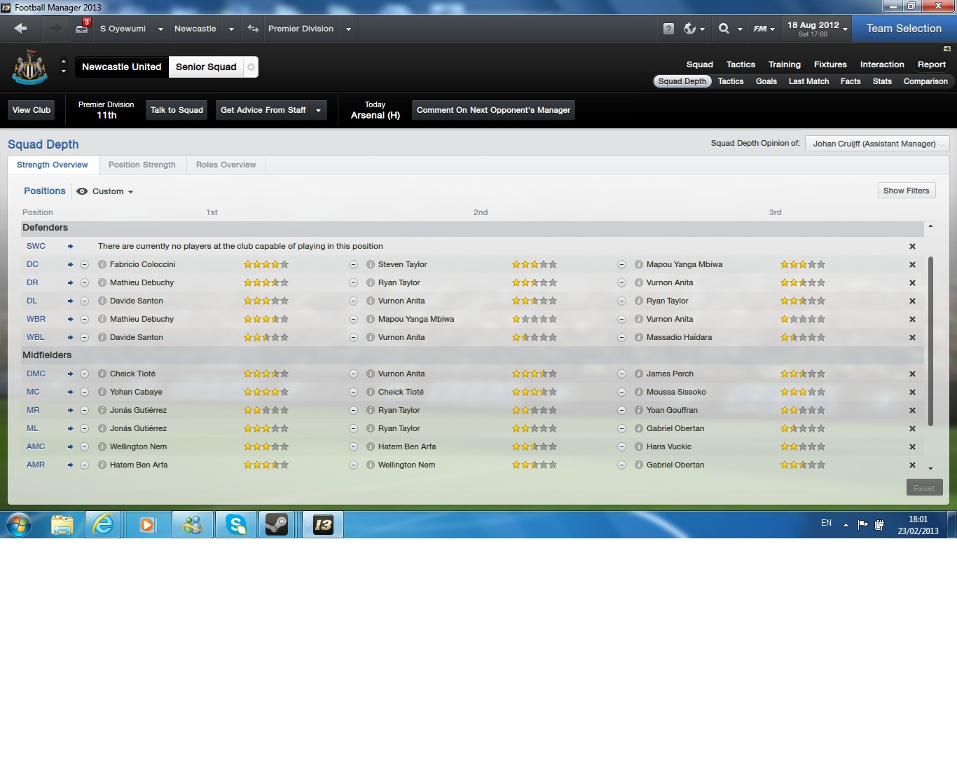 2013-02-23 20:42#82385 The Madrista : Great start mate, some good BraIlian signings. :). Great result against Arsenal too.Good luck for the rest of the season!
