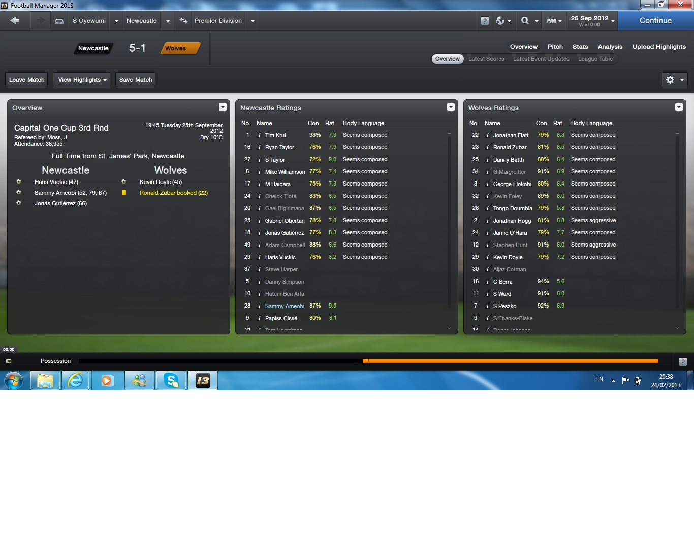 I'm absolutely delighted with the squad's recent results in the premier league, we've shown passion and urgency to overcome teams such as Manchester United!