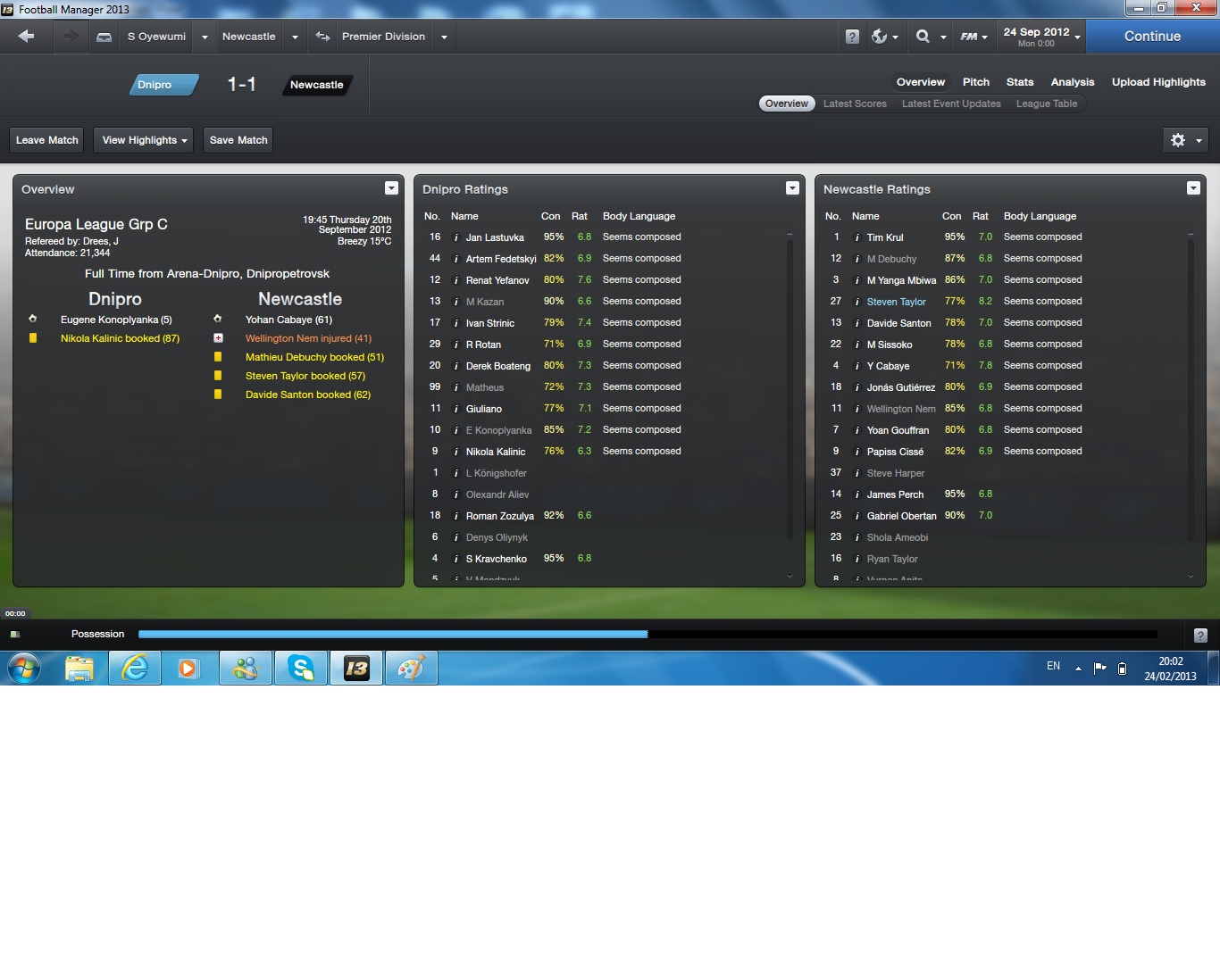 The squad played our first Europa League match and it ended in a 1-1 draw. This was a very tough game, especially as we conceeded first but the squad showed great fighting spirit to get a goal.