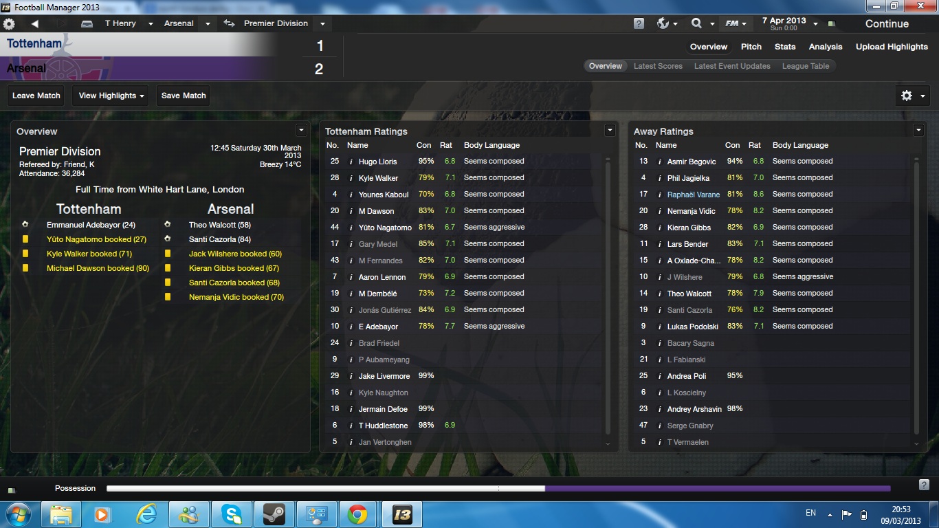 This match meant everything to us, if we were to stand any chance of winning the league we had to make sure we won this and pray city slip up. Not only was it crucial for the title but also for who rules North London, it was also a grudge match.
