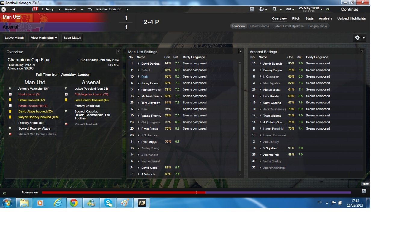 The treble! We had done the treble! In the champions league final it went all the way to penalty shoot-out and we won 4-2. An amazing victory for all the players and its nice to know you won the cup by beating your fierce rivals.