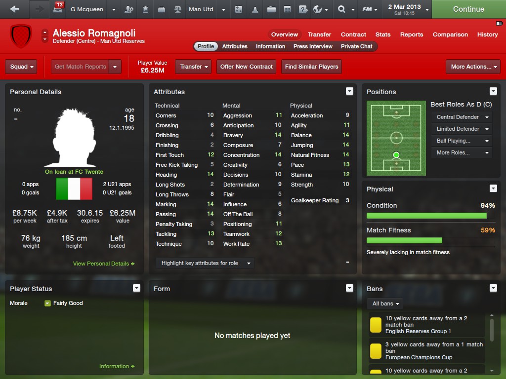 2013-03-30 00:39#88202 Liambrocklesby : Could you screenshot the £11M player from roma please mate, Good start btw :)