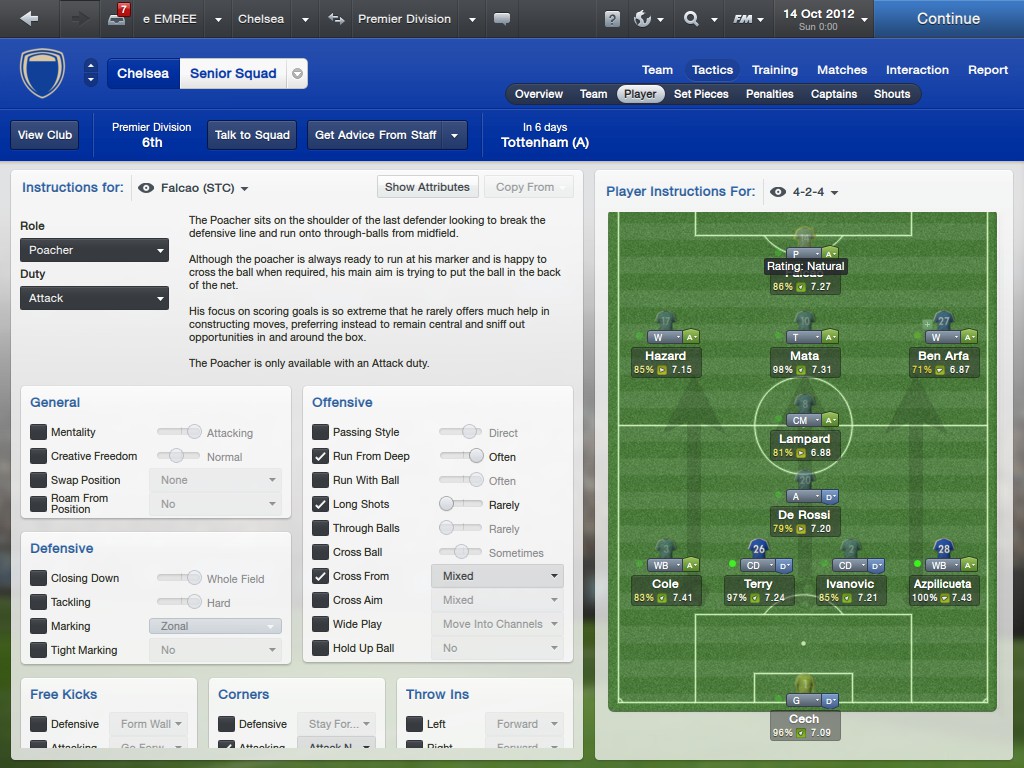 guys i need ur help...on my chelsea save falcao 3 goals in 12 match :/ and i m not conceeding much goals but i scored a few :) wats ur tactic advice or introductions...