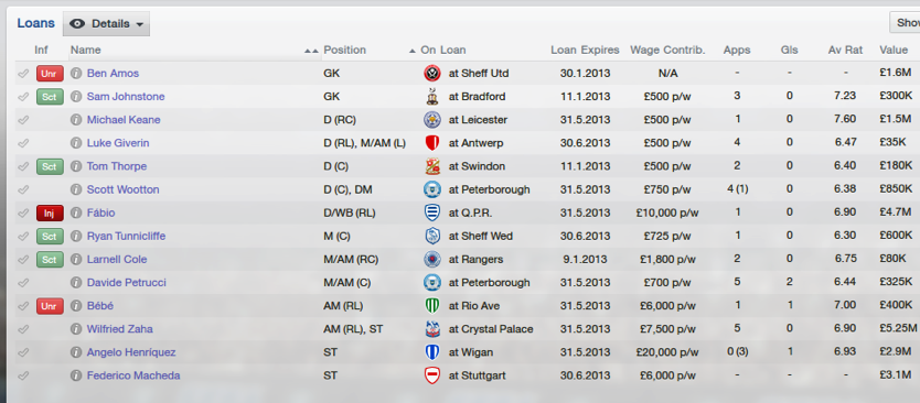 Loan News – I have a total of 14 players out on loan and I will be keeping very close tabs on Fabio, Zaha, Henriquez and Macheda.