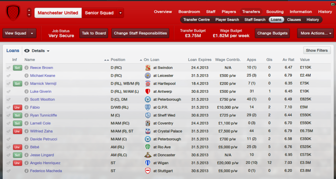 Loan News – Very happy in how Henriquez and Zaha are performing however disappointed that Fabio has not played more and that Macheda has only 1 sub appearance (another season wasted for the Italian).