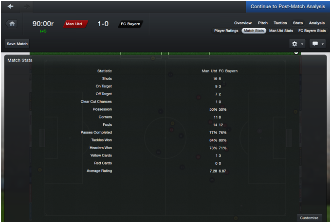Won the game 1-0 with Welbeck scoring after just 1 minute. Very happy with the defensive display as I stopped Bayern from creating chances. Now just have to finish the job in Germany.