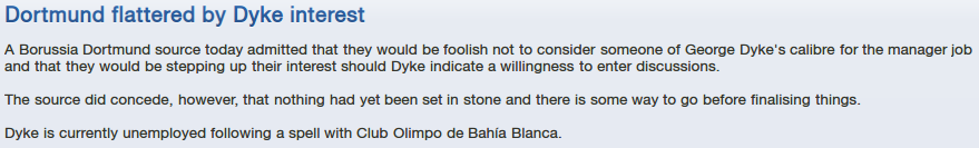 The board have apparently been very happy with G Dyke's performance this year and have apparently tried to offer him a new contract. Our reporters were there when he had his final meeting with the board of Olimpo.