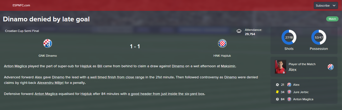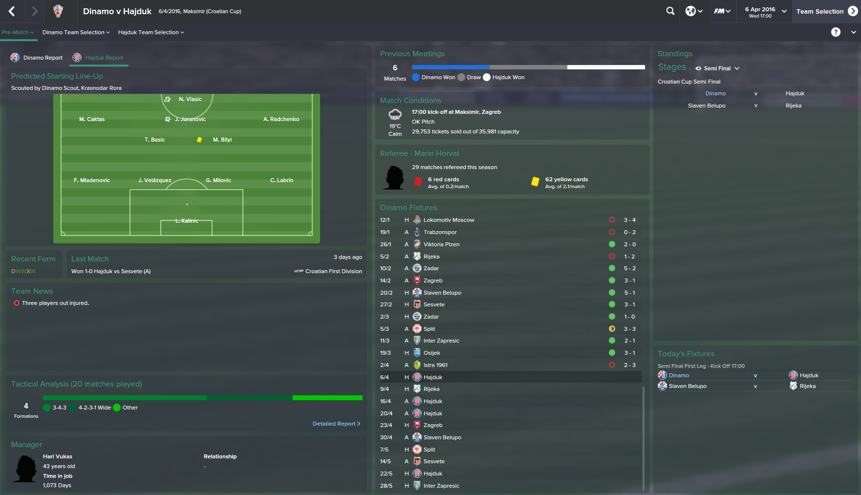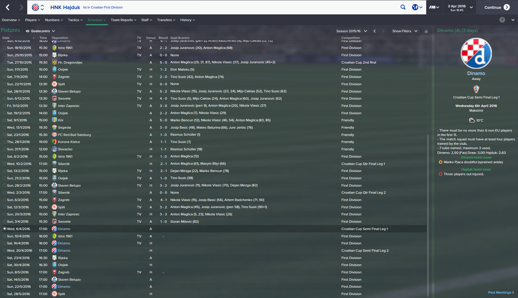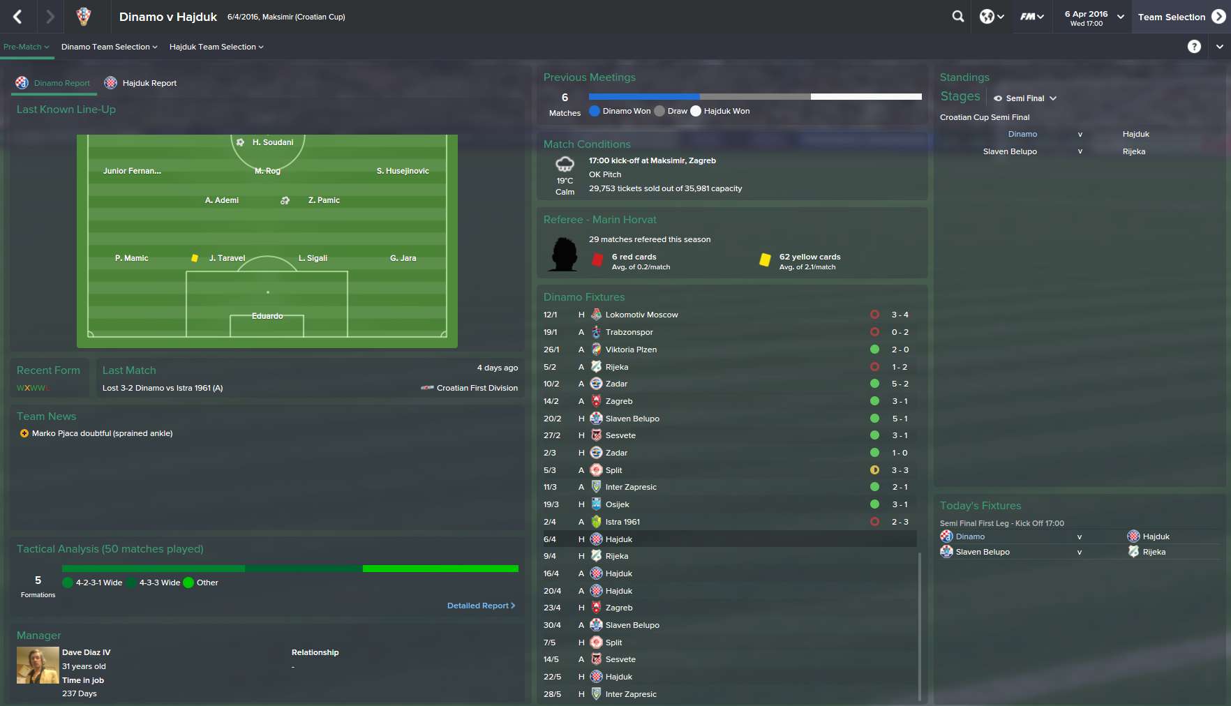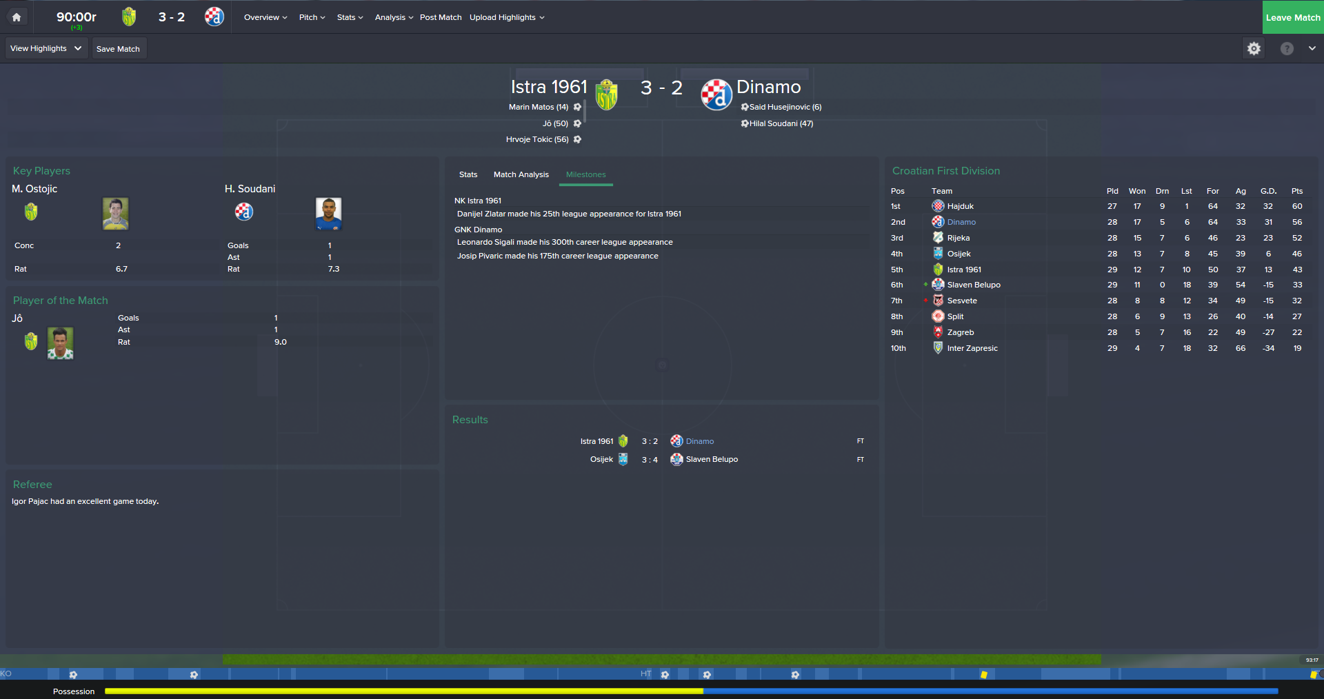 Dinamo is now four points behind Hajduk and will meet them four times before end of season. Two times in league and twice in Croatian Cup.