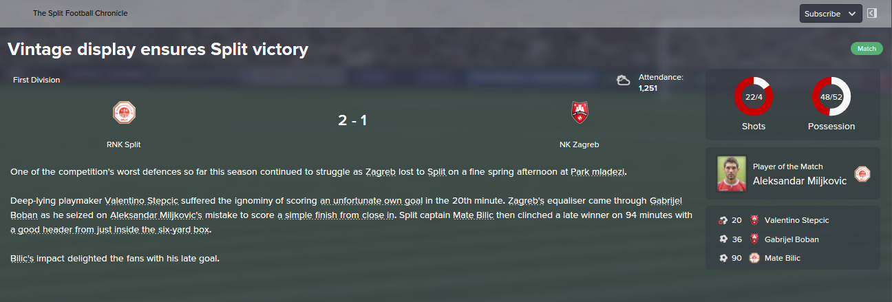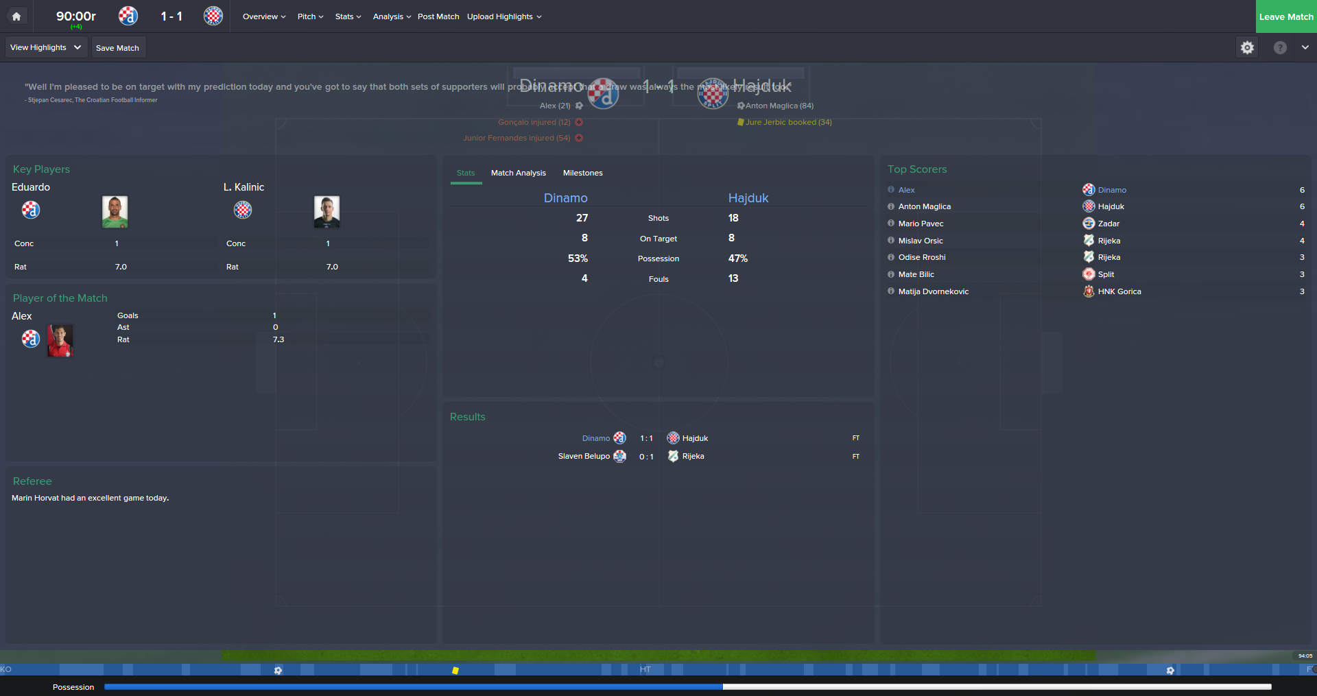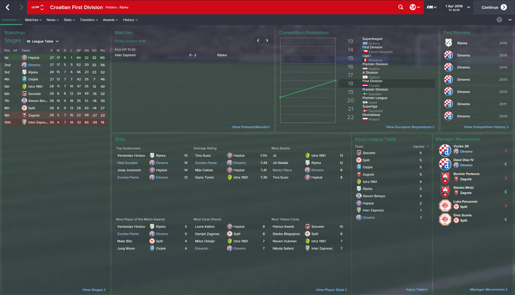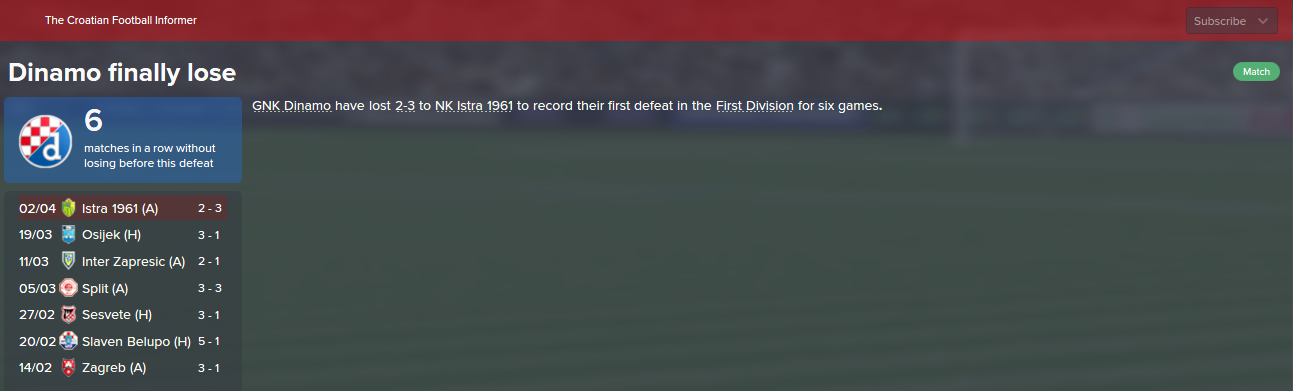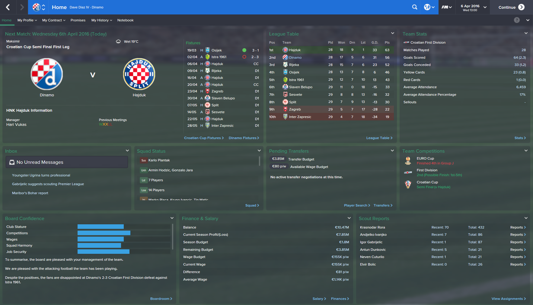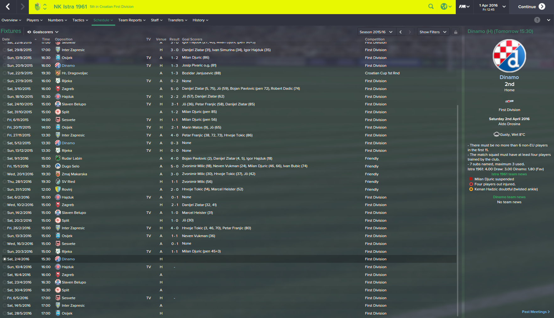 Dinamo is now four points behind Hajduk and will meet them four times before end of season. Two times in league and twice in Croatian Cup.