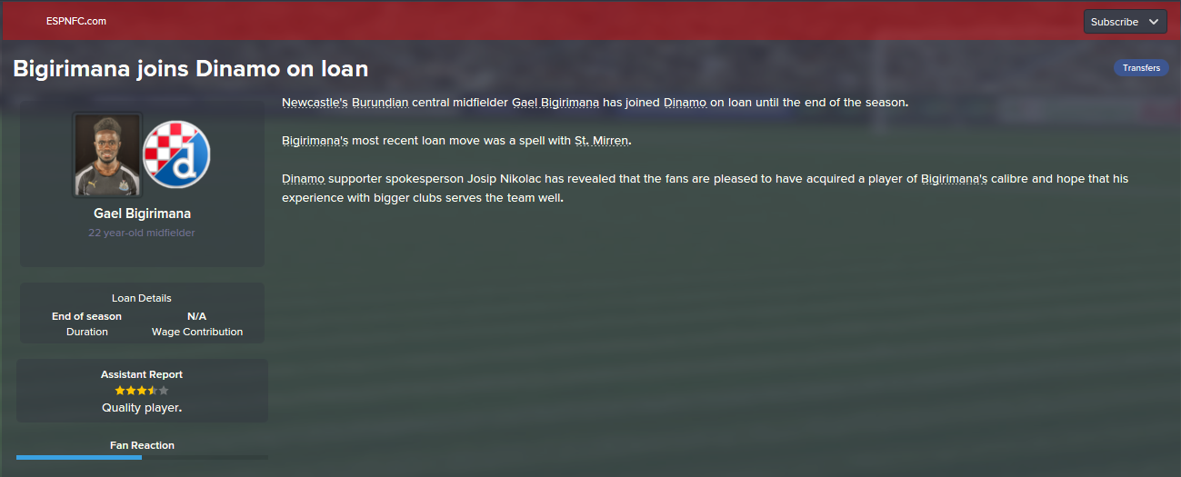 Dave: This is just one of good example why we have good management in club. Link with Newcastle provides us more depth for current season in which we looking what we expected last season.