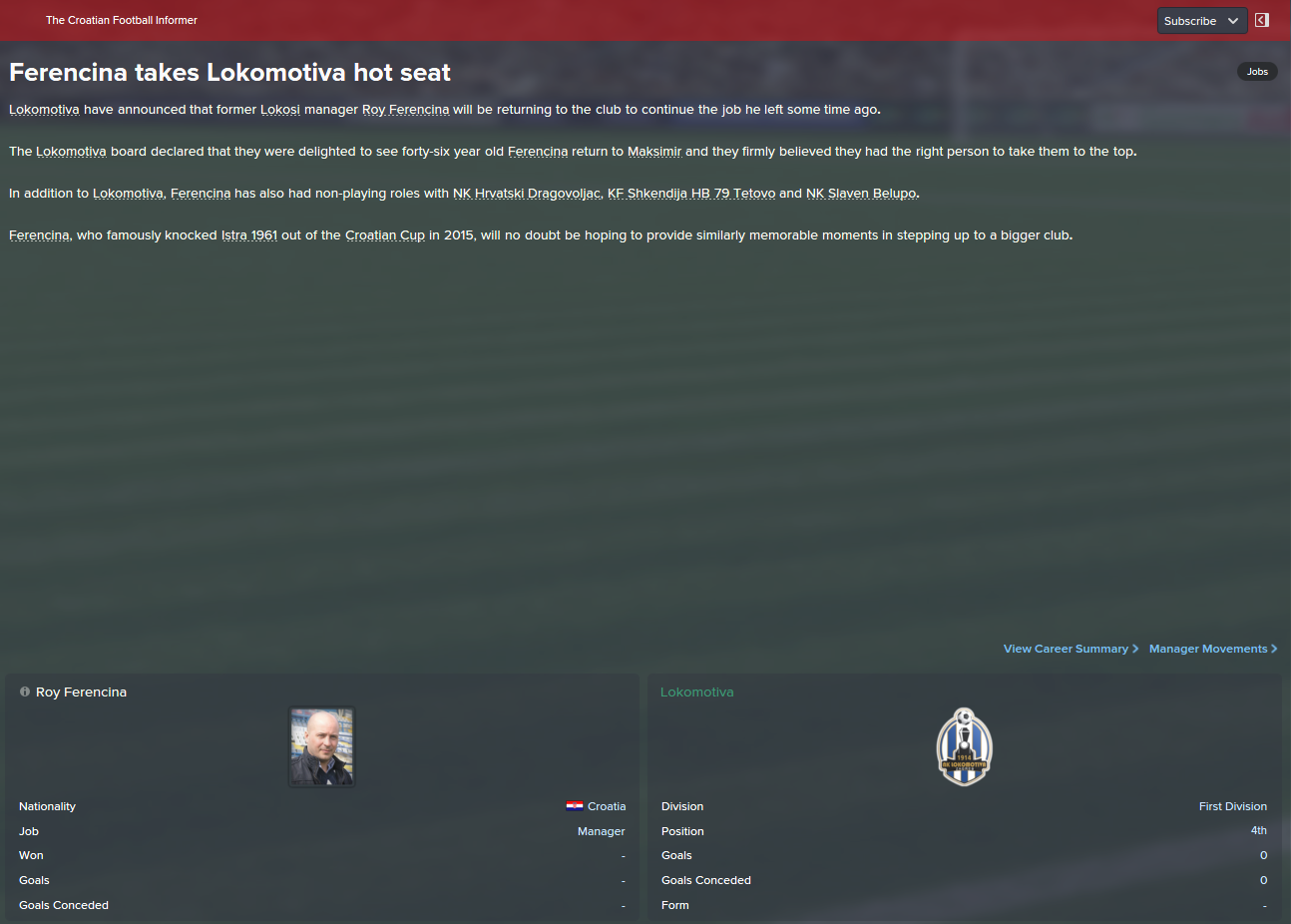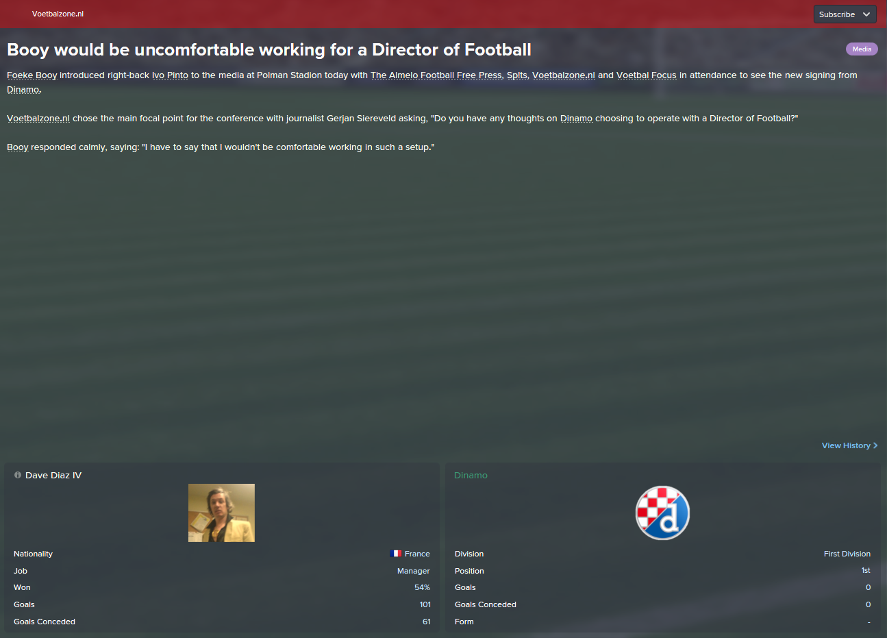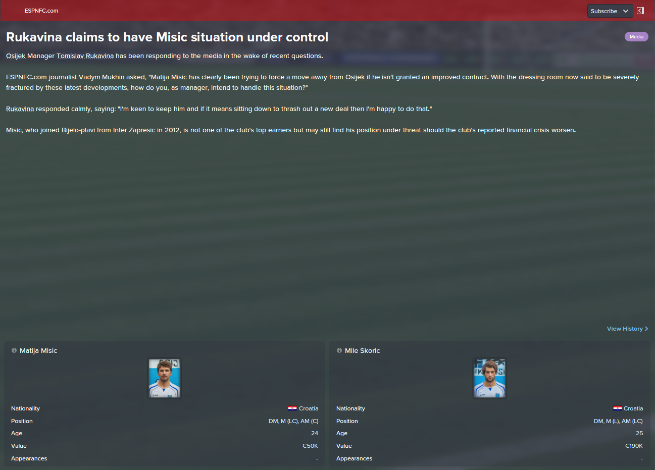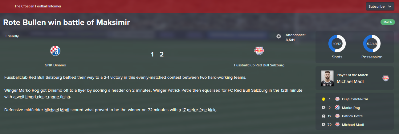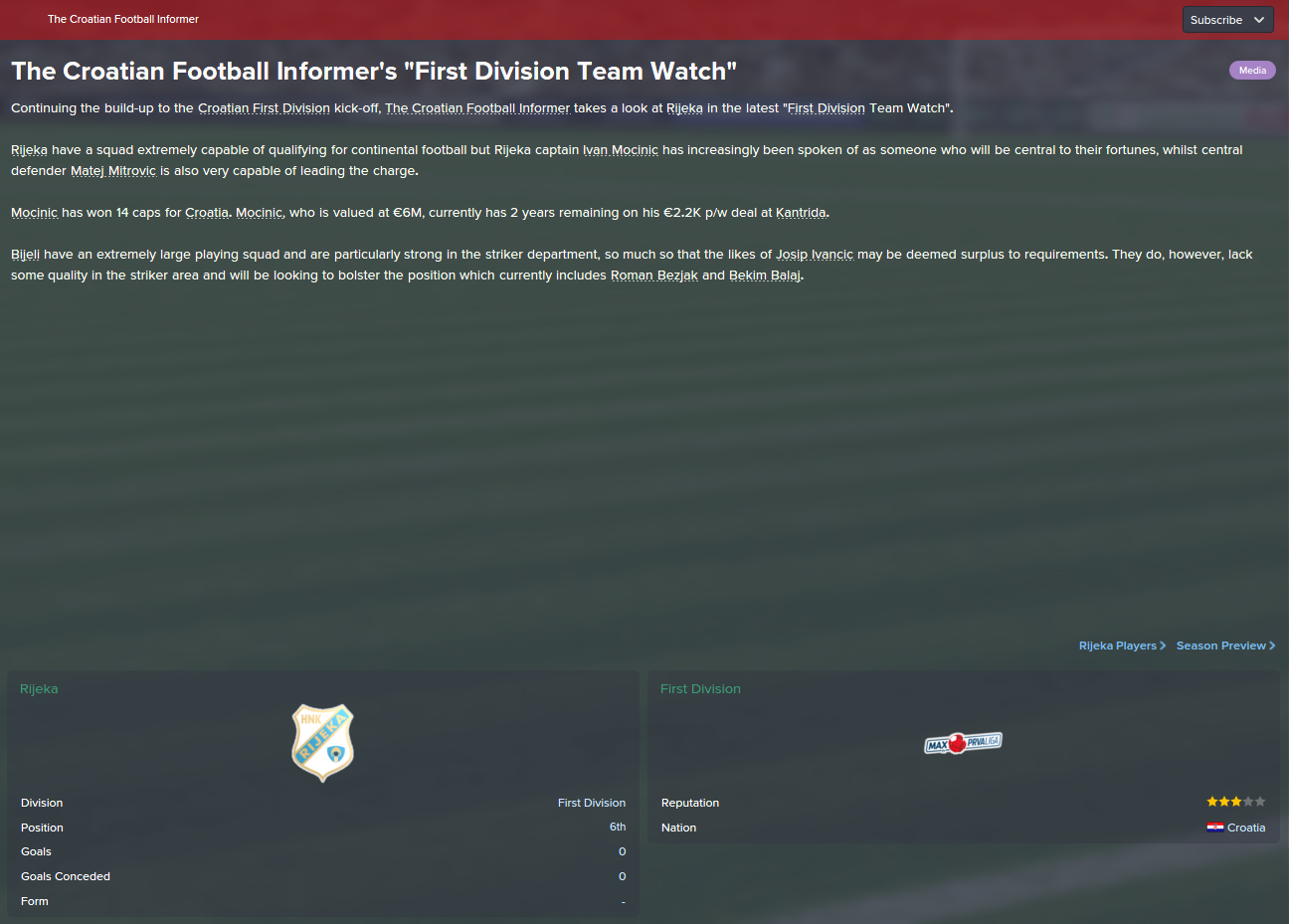 Dave: We accepted invitation... we think it will come handy and that it will not mess up with our fixtures. We do not have hard job before Hajduk. Of course i think about Ecup but it will also not provide problem. We are only unhappy some could come when Croatia will play like for example Salzburg.. but that is how it is... we will sit down in my private bar and watch matches like team with friends invited and i must say players are talking more about Croatia than about our fixtures and i am fine with it but on pitch i want from them to think about match and nothing else.. at least.. "let us win for Croatia will work"