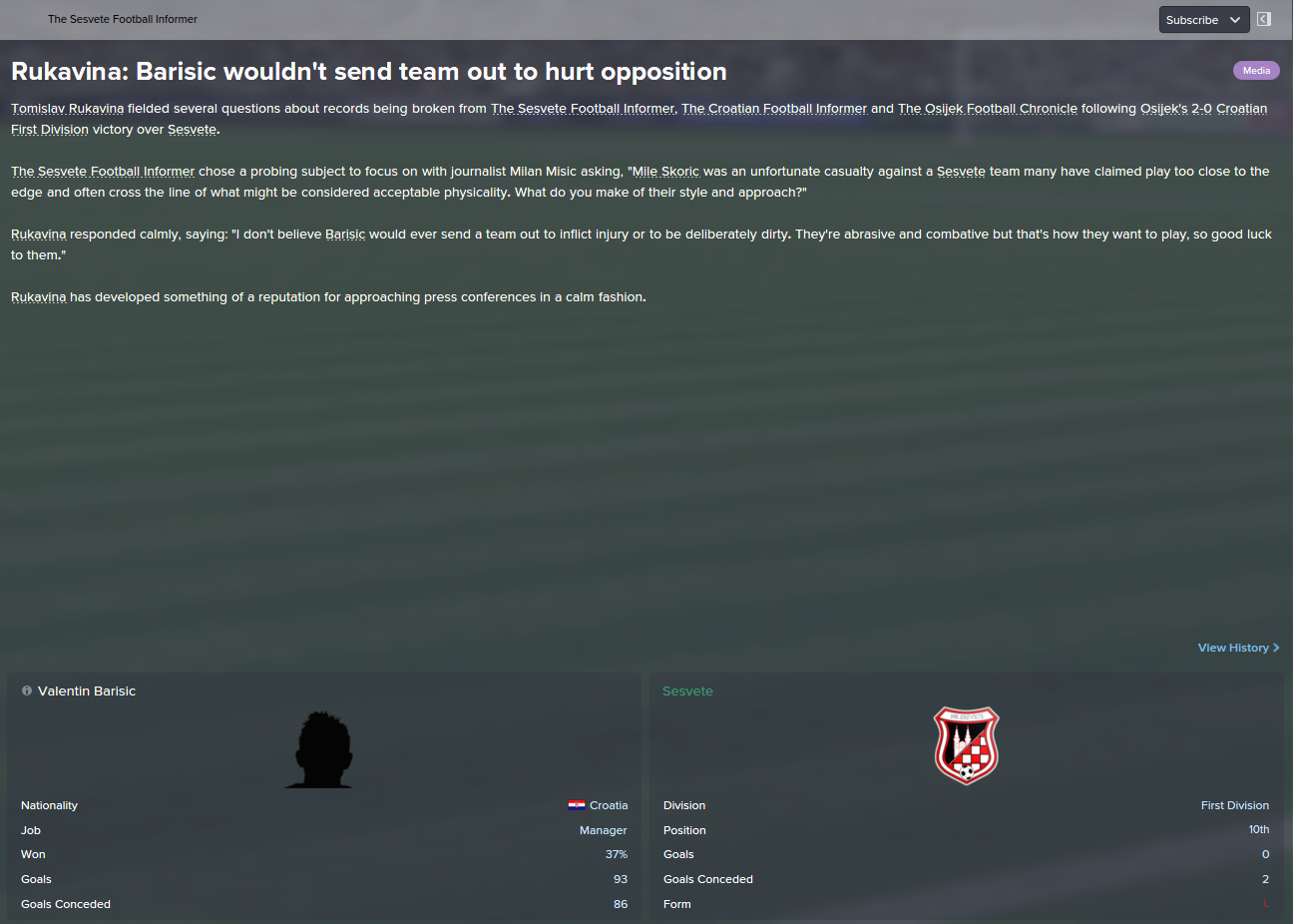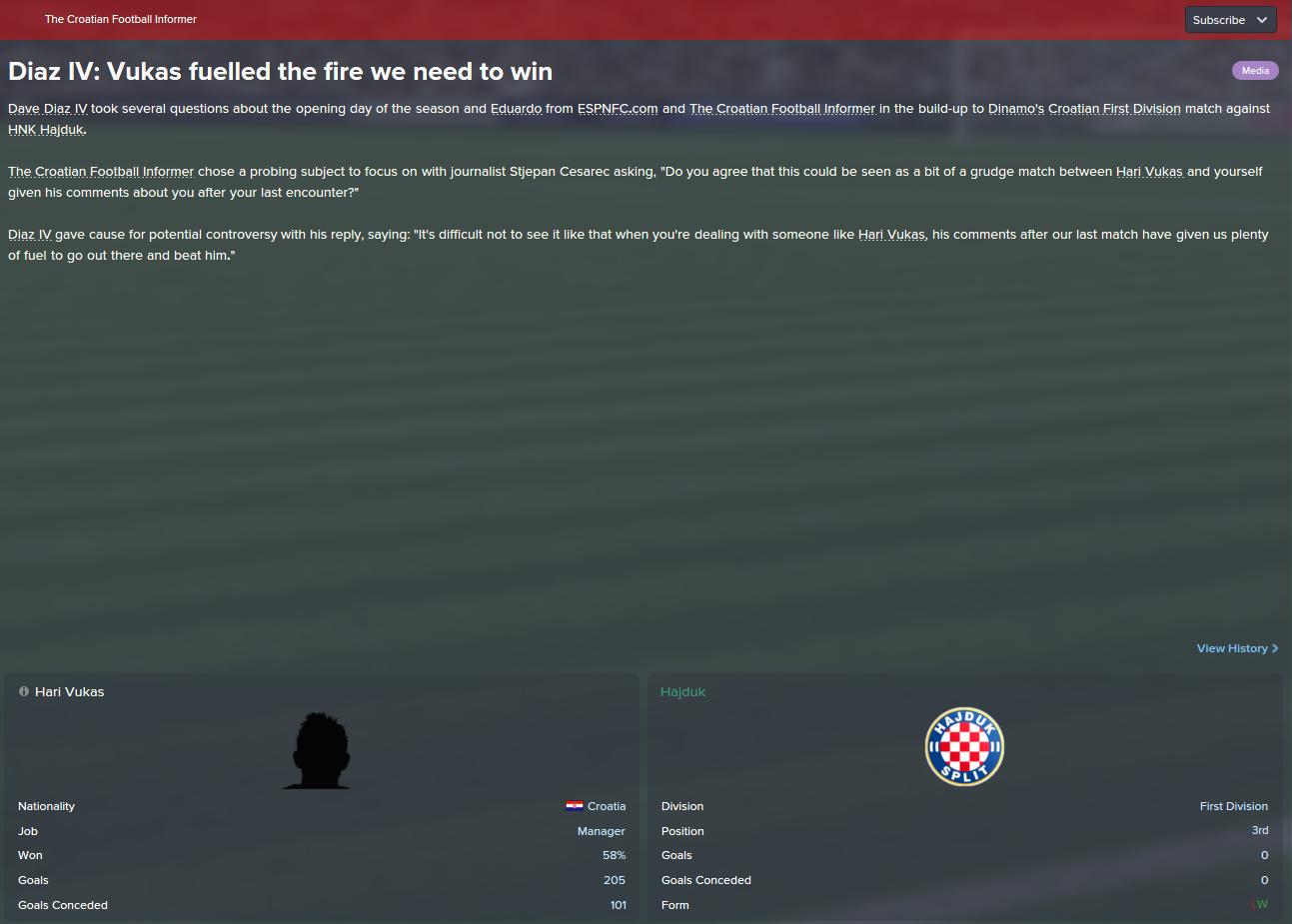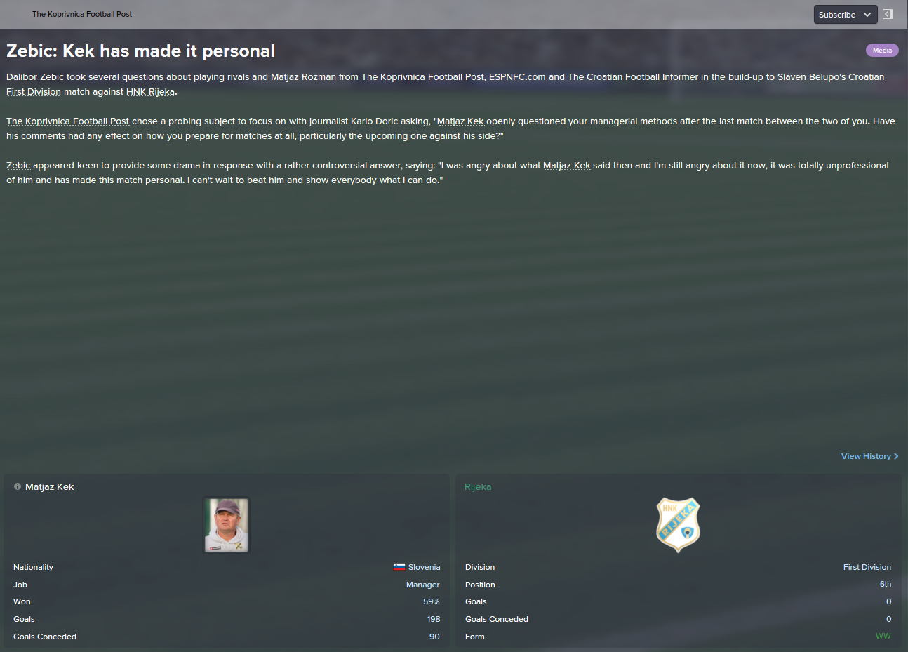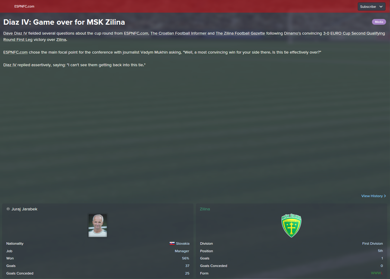 Dave: There is no shock. Only shock is newspapers where is read we have no enough to get over Zilina. You cunts! You destroyed Čačić, now you want to destroy me? We have no pass, we have no good players? Fuck you. I destroyed them once, i will do it again!