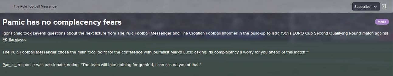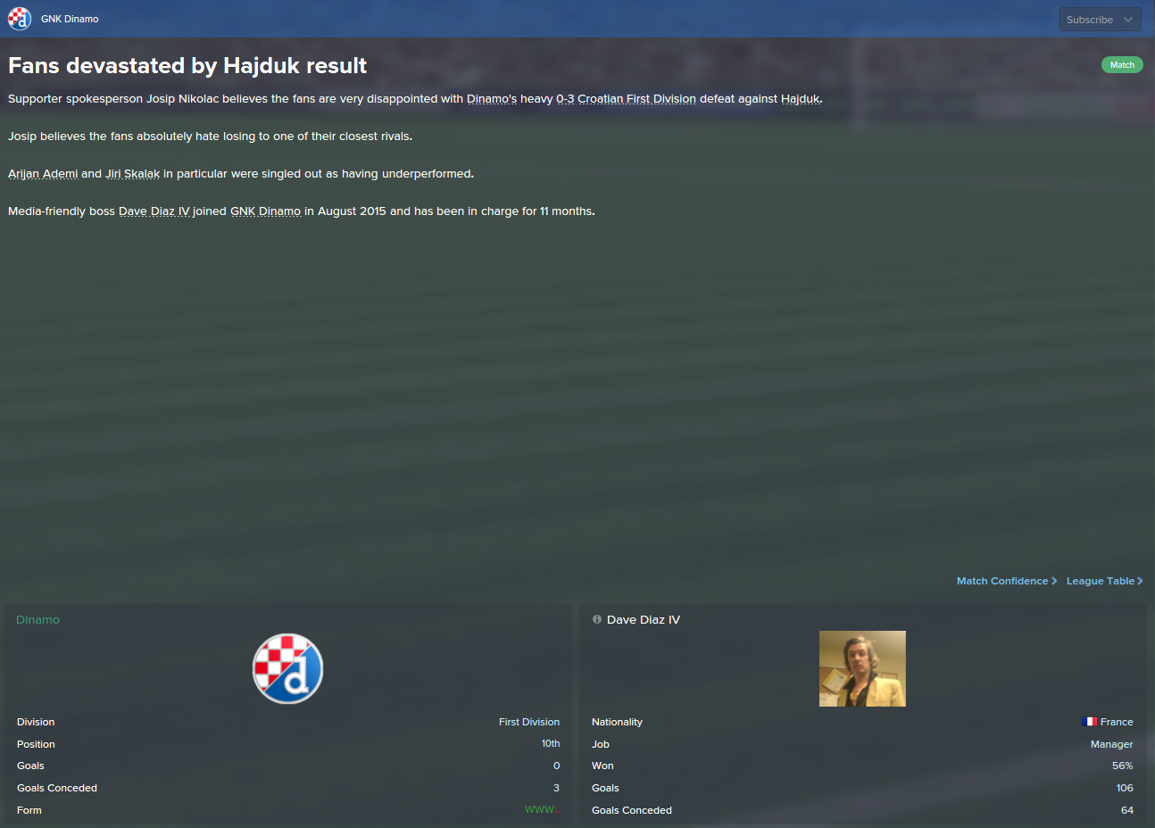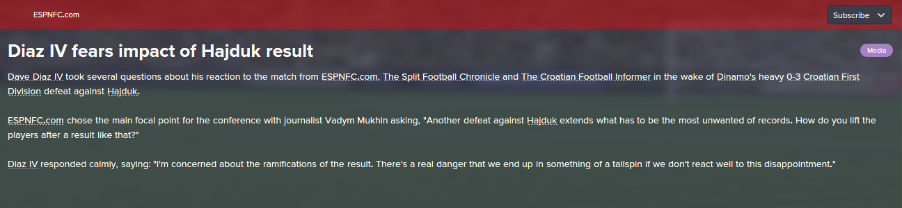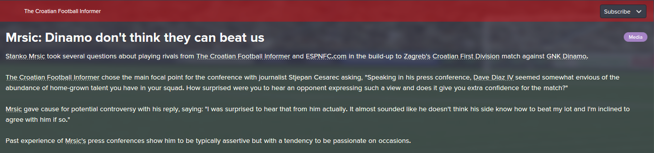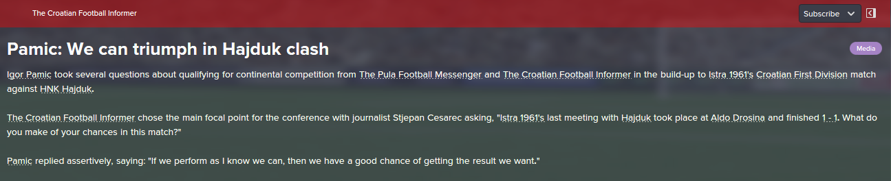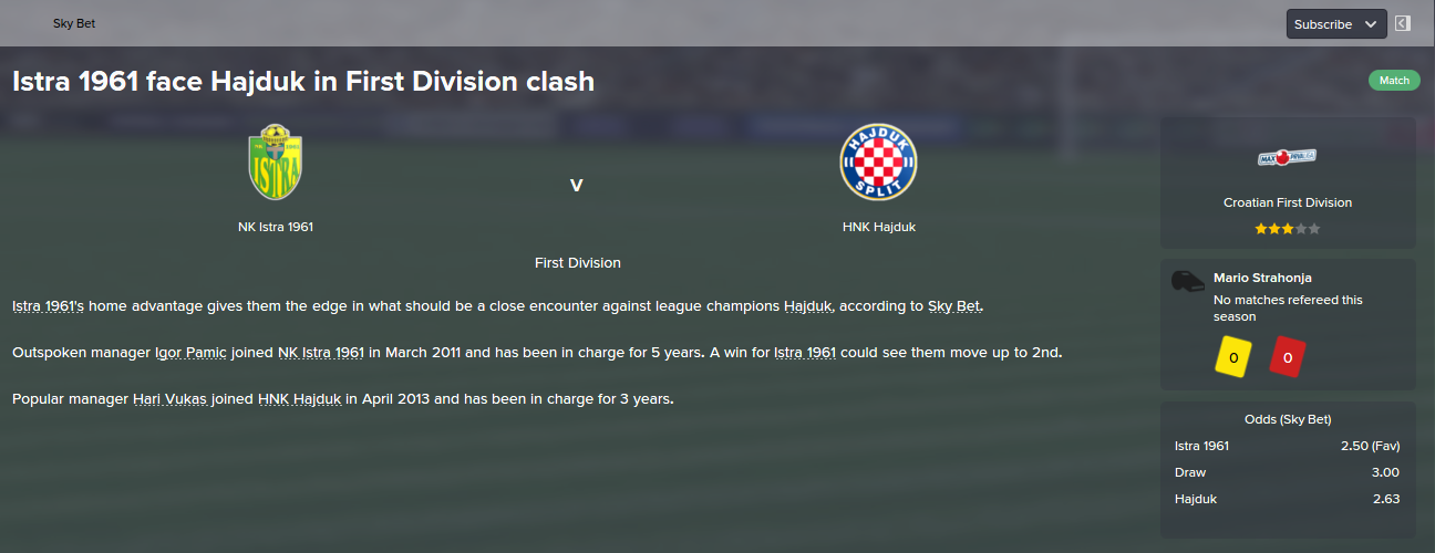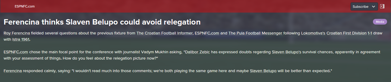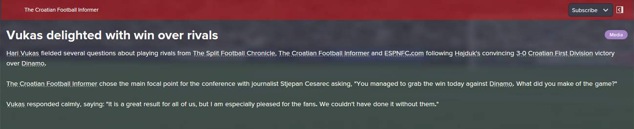 Before we go to the match with Zagreb we have to be aware that this is another derby, although the city here means that someone in the championship league is running a team, after that Hajduk has made it difficult to expect and it would be stupid to expect that we are favorites ... so I beg the players to get to the ground, to fuck the mother from the first minute .. let him shoot at the goal, let her legs ... we show that there is no more annoying because we have everything and we are the best ... we just have to start to fuck a man in the goal and that's what the doc will trophies on. I expect a slight victory, although I know it will be difficult but it is on the players and they are the ones who will need to be silent as they know. Thank you.