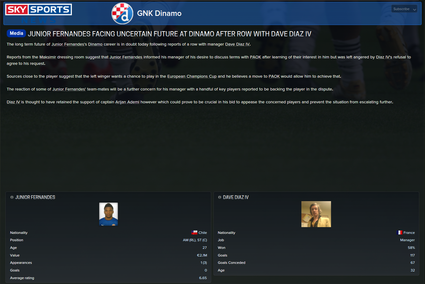 Dave also told on press that he sub Soudani and that he is very fast losing patience with him.