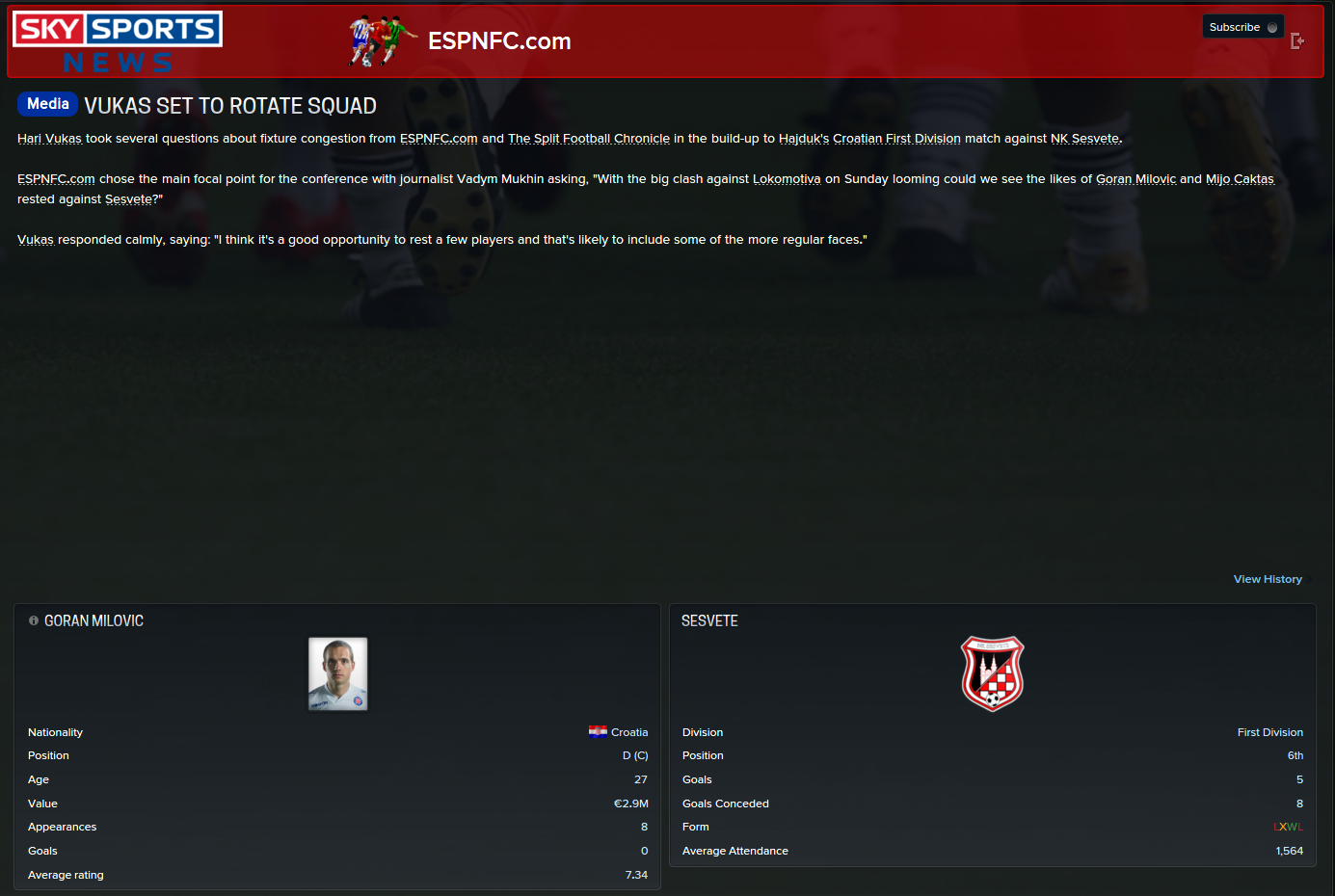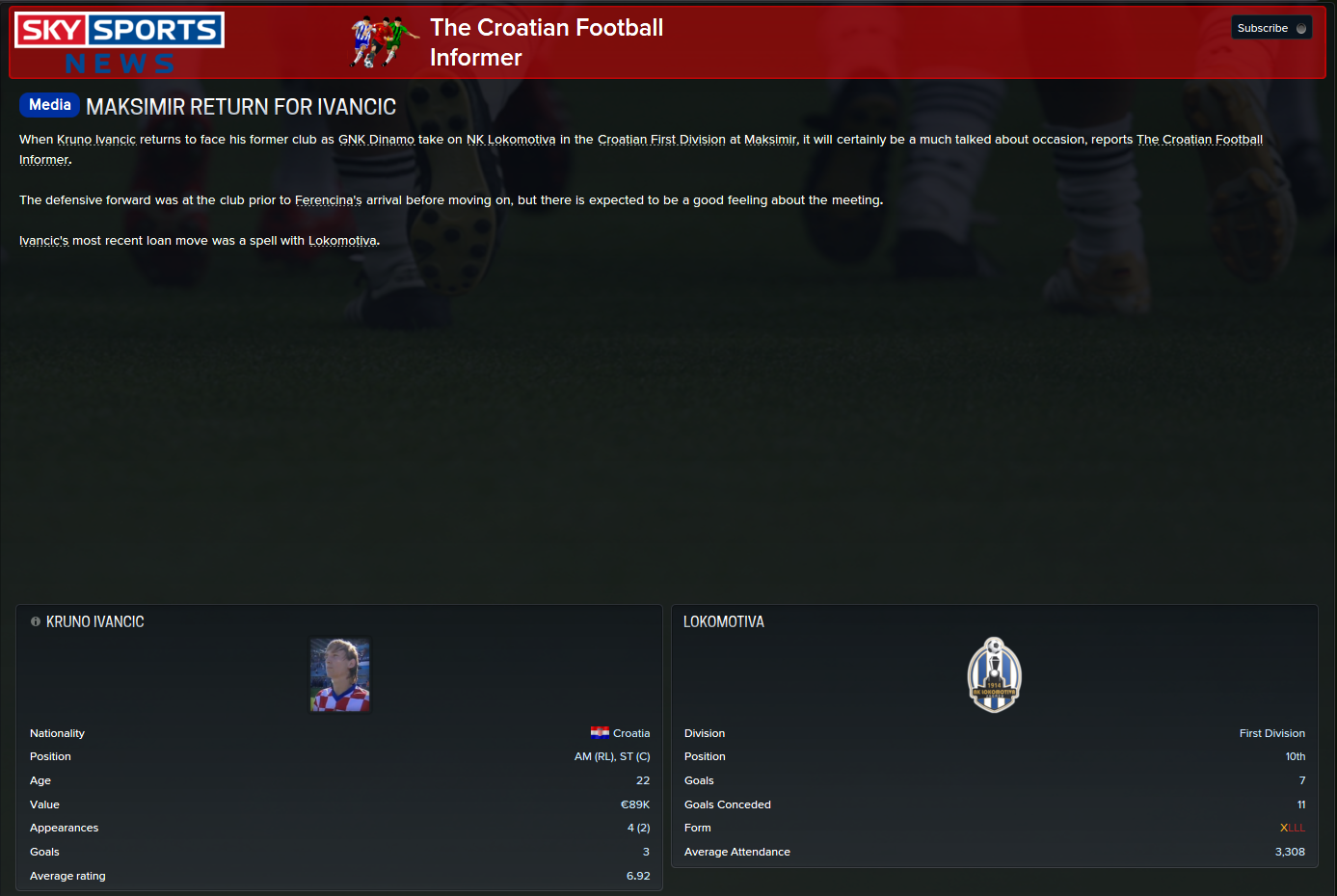 Dave: First i want to see him play in HNL competititon .. than i will decide is he ready if we ... and we will get into European Cup group stage.
