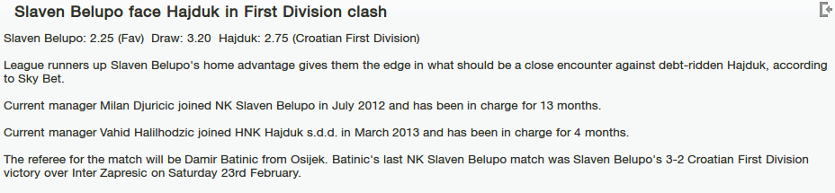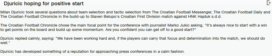 Cream on the end, Slaven Belupo who helf second place last season wait for Hajduk which was dissapointing. Tudor has of course get fired and now there is Vahid, eternal rival to Mamić and Diazepam and it will sure be flares on matches. Also Hajduk with many injuired players, or better on top of the list will need to get into a match with backup players.