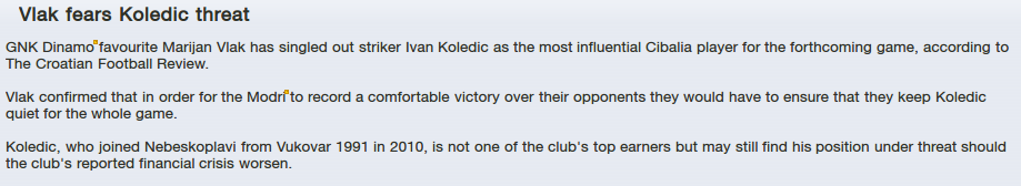There will also be Osijek and RNK Split there has not completly sure who will play first team and there is much talking about young hot prospect Rebić who is too under danger of financial crisis.