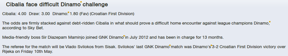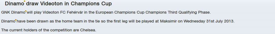 And finally Season starts. First Matches will be played 27.2013 July. GNK Dinamo will go in Koprivnica where they will play against Cibalia who are expected to be relegated by media. Miroslav Bojko was unsecure at press conference and he knows that Dinamo can damage them by high score. Also many players are on point where they will need to be forced out of club if financial status went down. Also with many players injured and many rotatin to add, he will sure need to made big bunker if Dinamo will play like three last game.