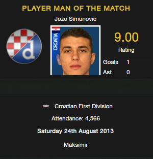 Striker Duje Cop got GNK Dinamo off to a flyer by scoring a tidy finish from 15 metres on 3 minutes. An error from Sportklub Rapid Wien's Michael Schimpelsberger allowed striker Fatos Beciraj to score a well timed close range finish. Striker Terrence Boyd pulled one back for Sportklub Rapid Wien after 25 minutes with an effort from 18 metres.