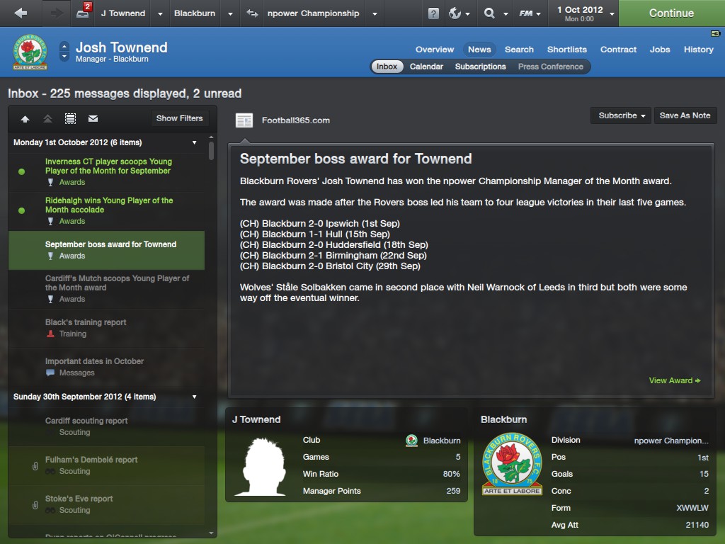 It's been another good month in the league for Blackburn Rovers. The lancastrians have climbed to the top of the table, into the automatic promotion places by four points. However, the defeat against Ipswich Town was bitterly disappointing and it now means Blackburn are only unbeaten in the league, still a good achievement however. The club has the best defensive record in the league, having conceded just two goals in the league.
